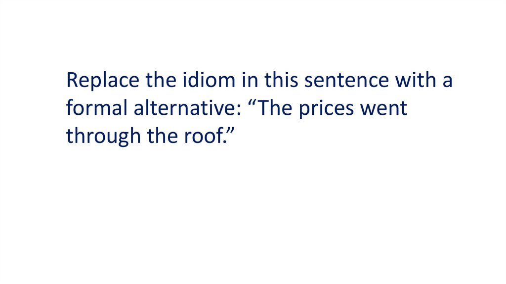 Replace the idiom in this sentence with aformal alternative: “The prices went