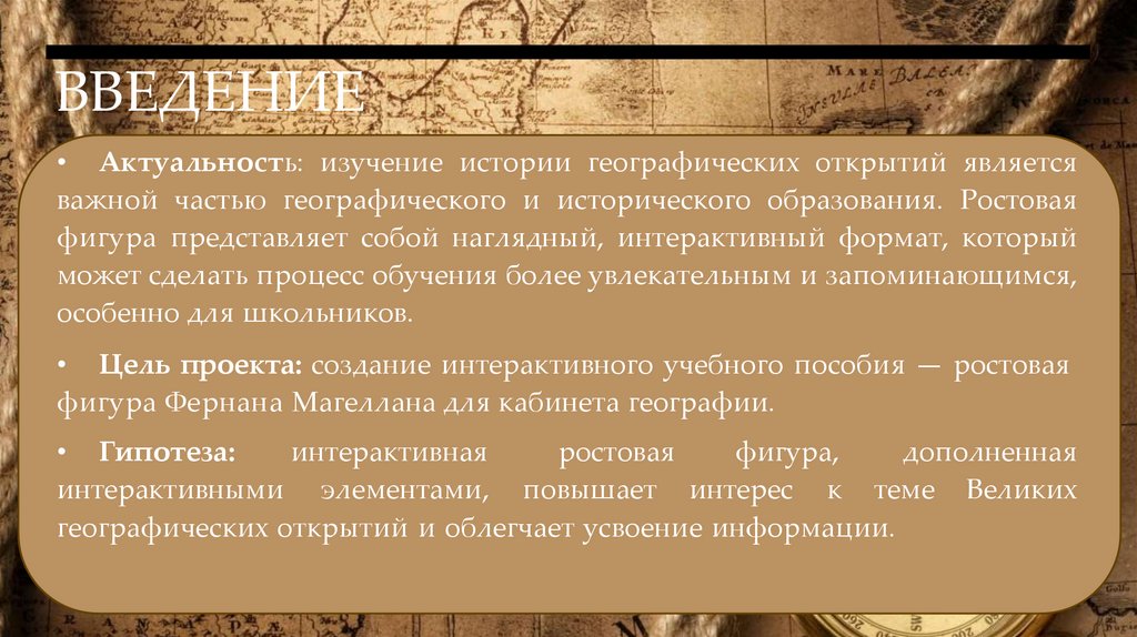 ВВЕДЕНИЕ• Актуальность: изучение истории географических открытий является