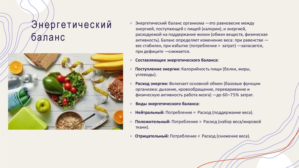 активность). Баланс определяет изменение веса: при равенстве —