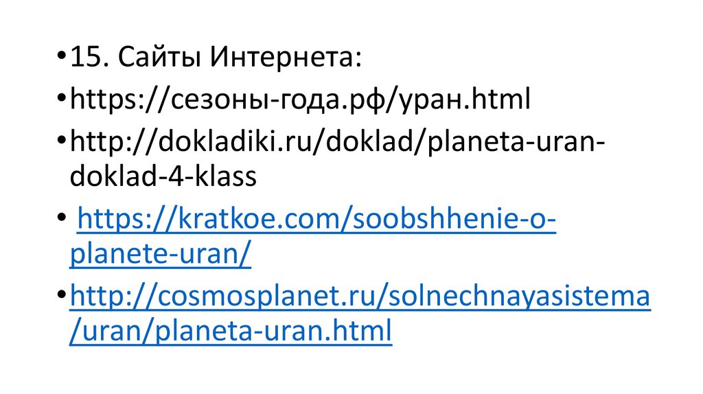 •15. Сайты Интернета:•https://сезоны-года.рф/уран.html