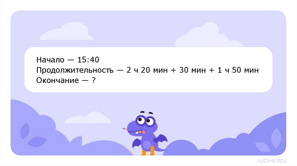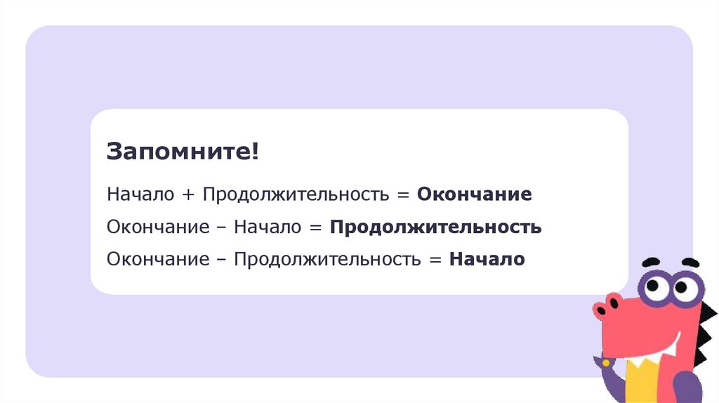 Запомните!Начало + Продолжительность = Окончание