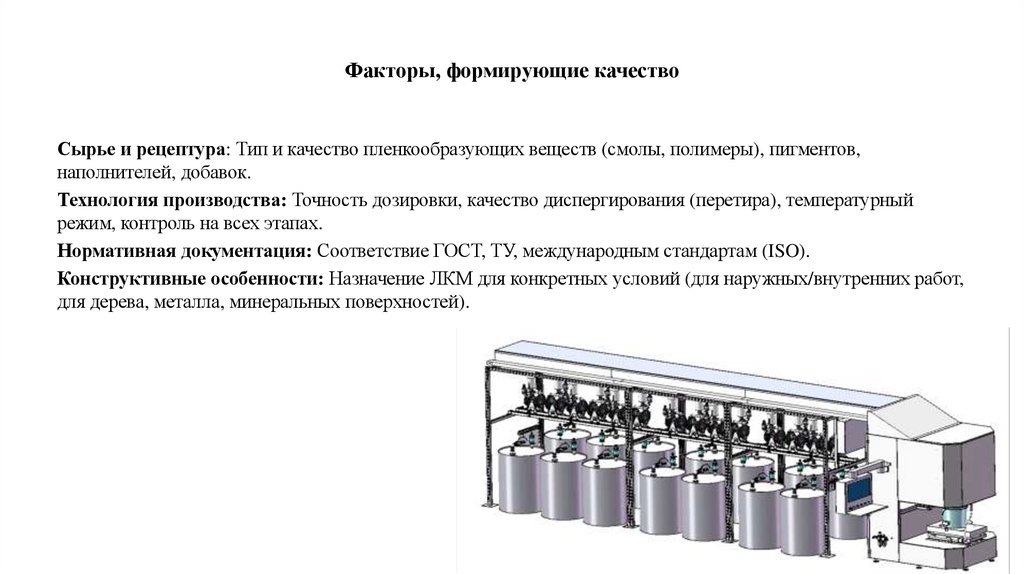 Факторы, формирующие качествоСырье и рецептура: Тип и качество пленкообразующих веществ (смолы, полимеры), пигментов,
