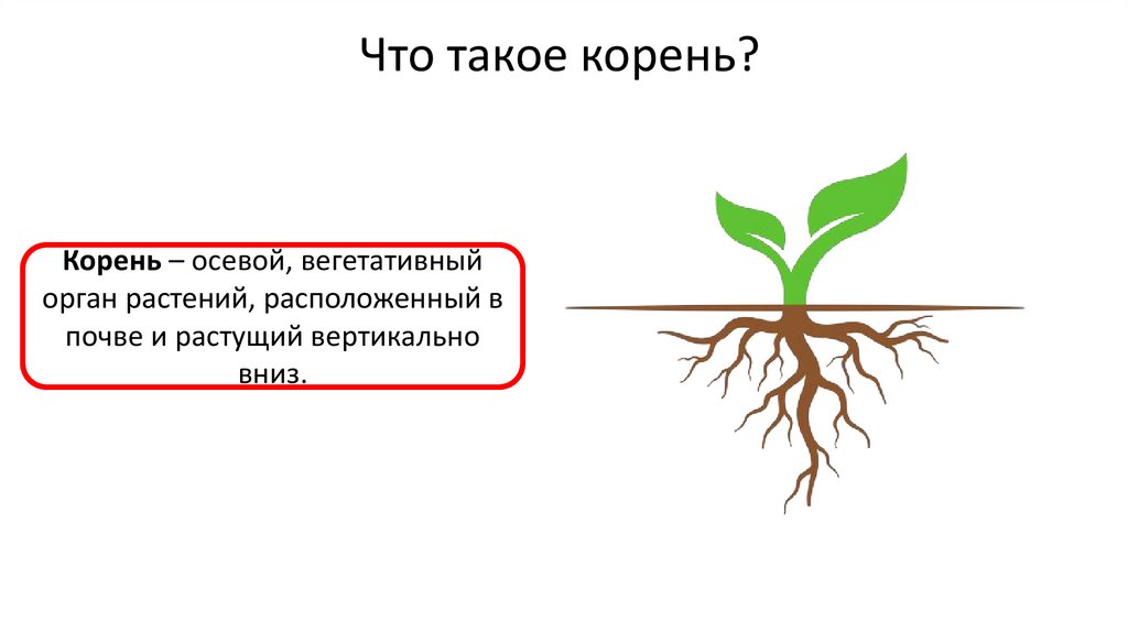 Главный — возникает из зародышевого корешка.Боковые — отходят от других корней.