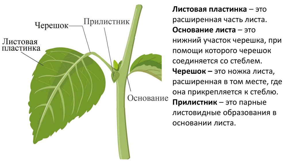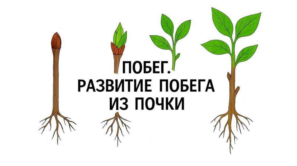 Побег — стебель с листьями и почками.Узел — место крепления листа.