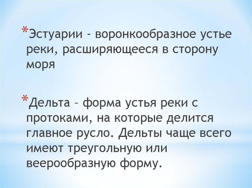 *Эстуарии - воронкообразное устьереки, расширяющееся в сторону