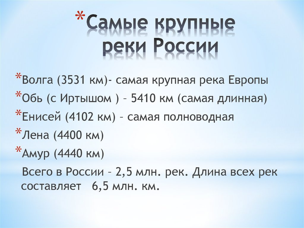 Всего в России – 2,5 млн. рек. Длина всех рек