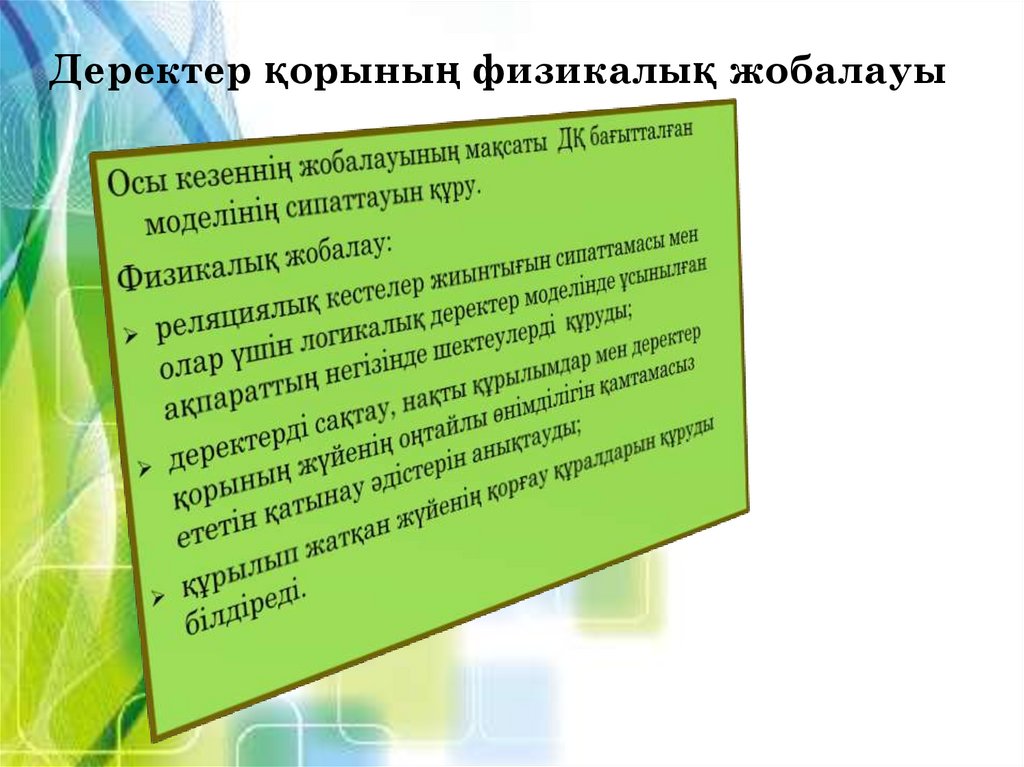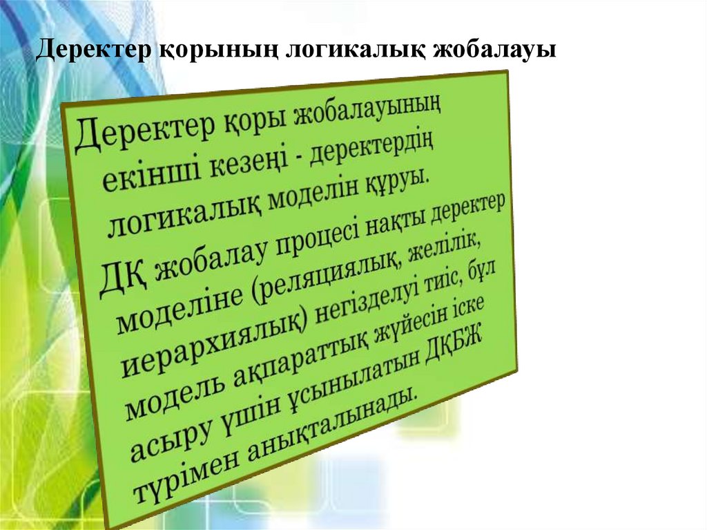 Дәріс 4Деректер қорын жобалаудың