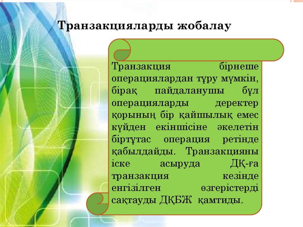 • транзакцияларды жобалау;