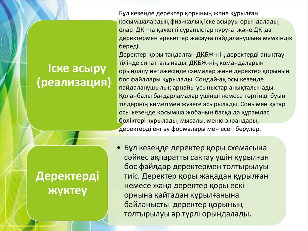 • Осы кезеңде деректер қоры қосымшаларының