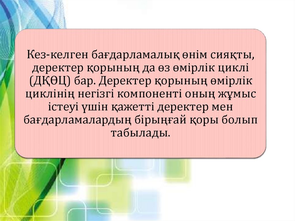 Кез-келген бағдарламалық өнім сияқты,деректер қoрының да өз өмірлік циклі