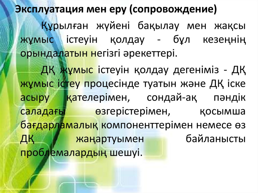 Эксплуатация мен еру (сопровождение)Құрылған жүйені бақылау мен жақсы