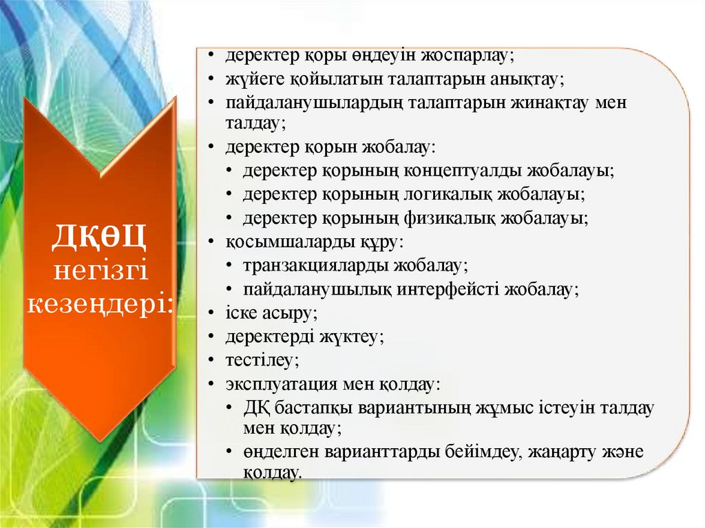 2. Деректер қорын жобалау кезеңдері.