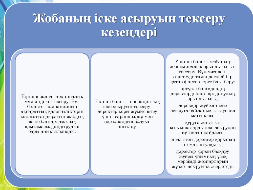 Жобаның іске асыруын тексерукезеңдері