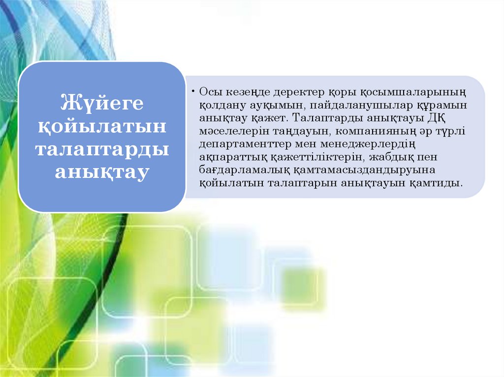 анықтау қажет. Талаптарды анықтауы ДҚ