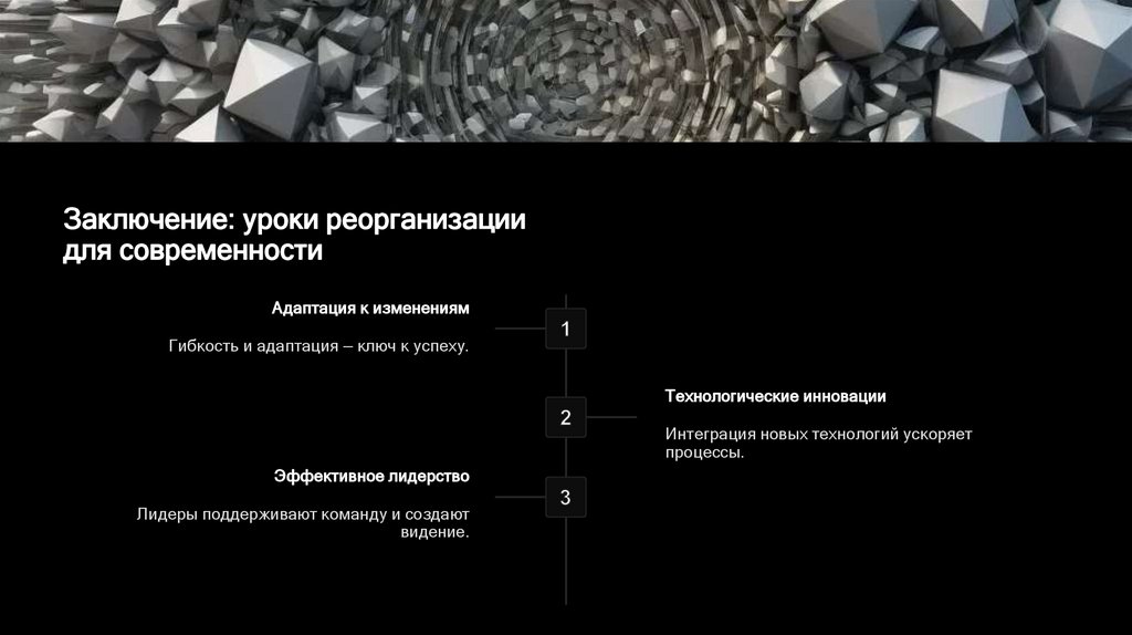 Заключение: уроки реорганизациидля современности