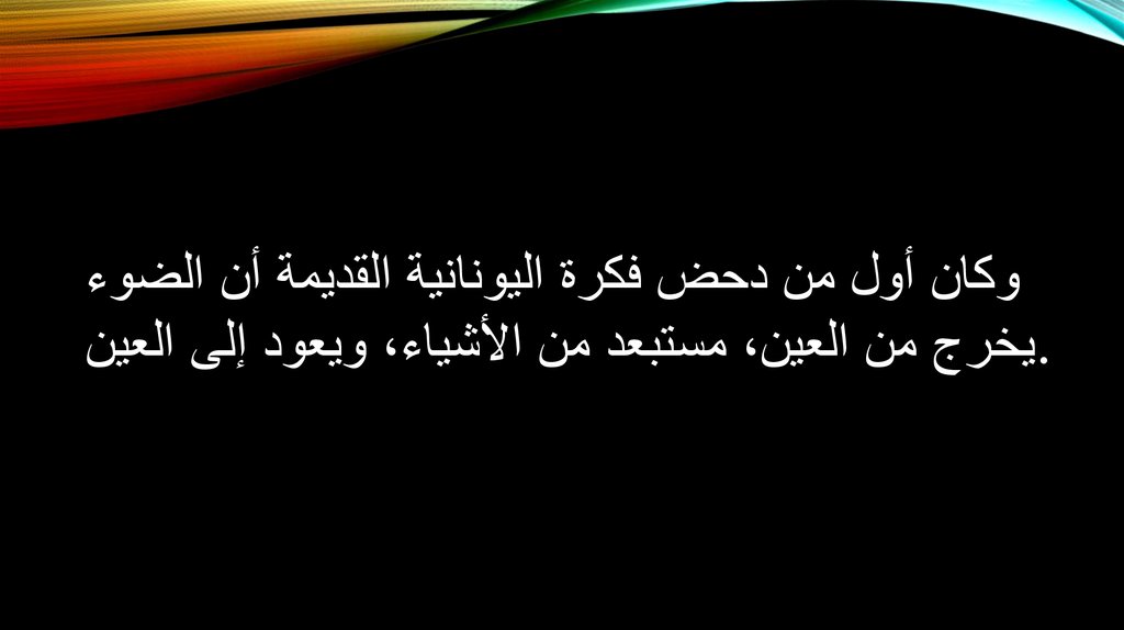 وكان أول من دحض فكرة اليونانية القديمة أن الضوء.يخرج من العين ،مستبعد من األشياء ،ويعود إلى العين