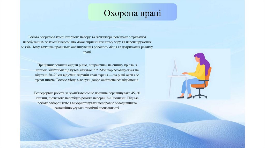 Охорона праціРобота оператора комп’ютерного набору та бухгалтера пов’язана з тривалим
