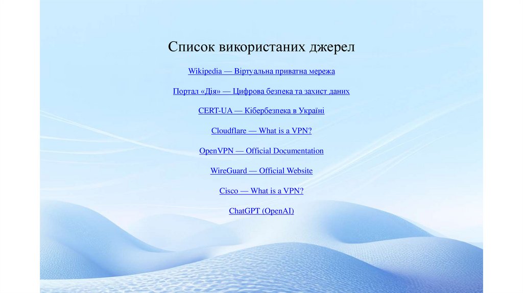 Список використаних джерелWikipedia — Віртуальна приватна мережа