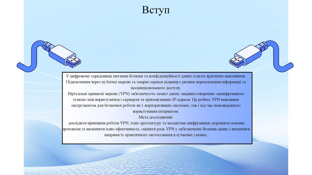 • Досліджено застосування VPN у повсякденному житті, корпоративних мережах та хмарних