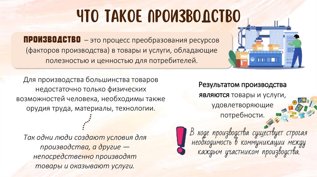 Что такое производствоПроизводство – это процесс преобразования ресурсов