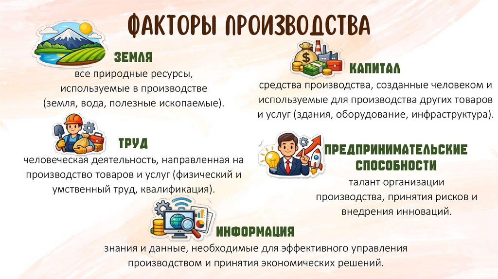ограниченный участок земли, труд нескольких работников и определенное количество финансовых