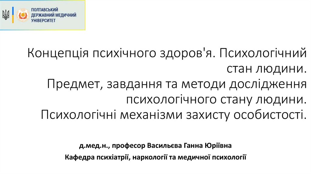 1. Концепція психічного здоров'я. Психологічний стан людини. Предмет, завдання та методи дослідження психологічного стану людини.