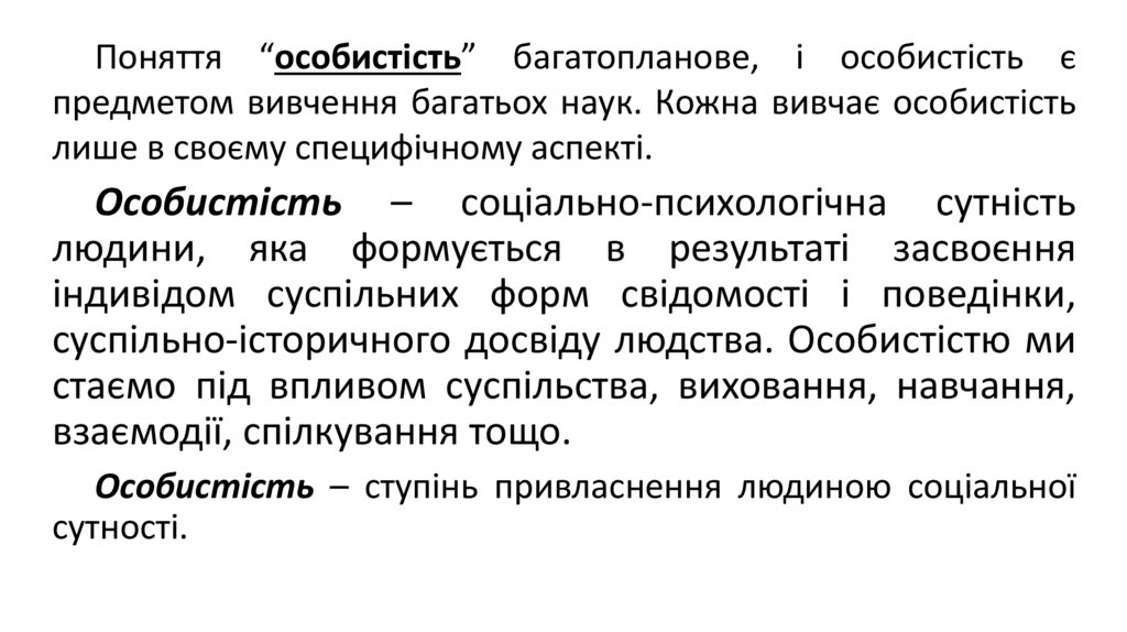 Поняття “особистість” багатопланове, і особистість єпредметом вивчення багатьох наук. Кожна вивчає особистість