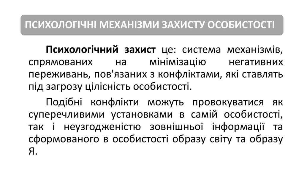 Психологічні механізми захисту особистості.д.мед.н., професор Васильєва Ганна Юріївна