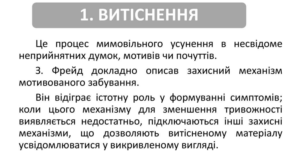 9. ЗАПЕРЕЧЕННЯЦе механізм відкидання думок, почуттів, бажань, потреб або