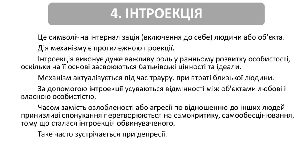 4. ІНТРОЕКЦІЯЦе символічна інтерналізація (включення до себе) людини або об'єкта.