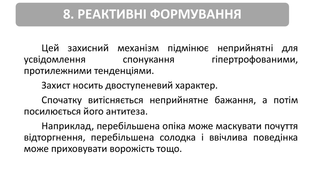 8. РЕАКТИВНІ ФОРМУВАННЯЦей захисний механізм підмінює неприйнятні для