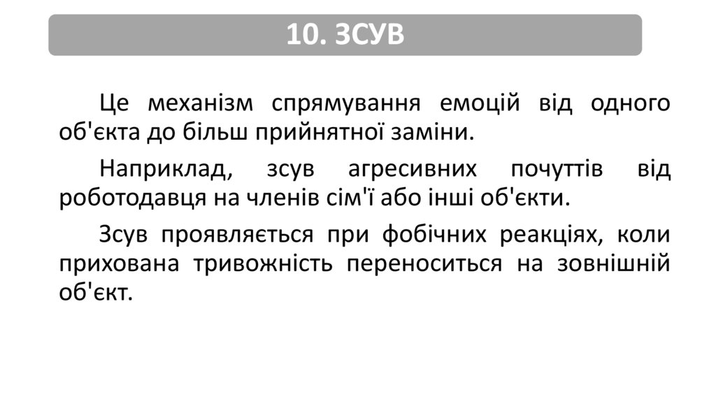 10. ЗСУВЦе механізм спрямування емоцій від одного