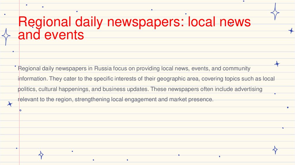 Regional daily newspapers in Russia focus on providing local news, events, and community