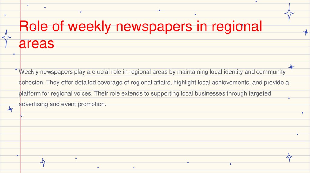 Weekly newspapers play a crucial role in regional areas by maintaining local identity and community