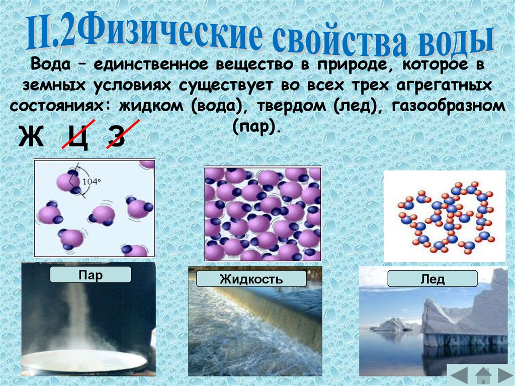 Вода – единственное вещество в природе, которое вземных условиях существует во всех трех агрегатных