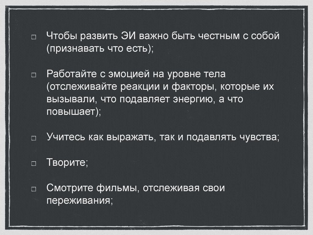Чтобы развить ЭИ важно быть честным с собой(признавать что есть);
