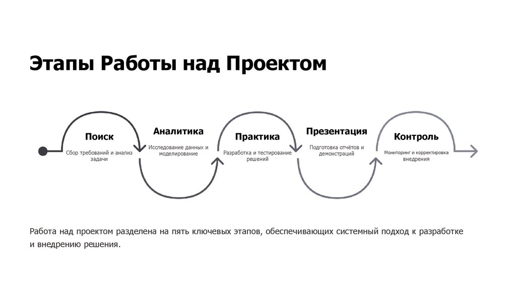 Работа над проектом разделена на пять ключевых этапов, обеспечивающих системный подход к разработке
