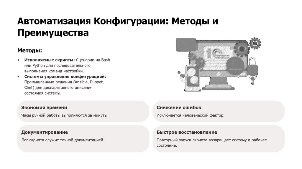 Обеспечено единообразие конфигурации на всех компьютерах.