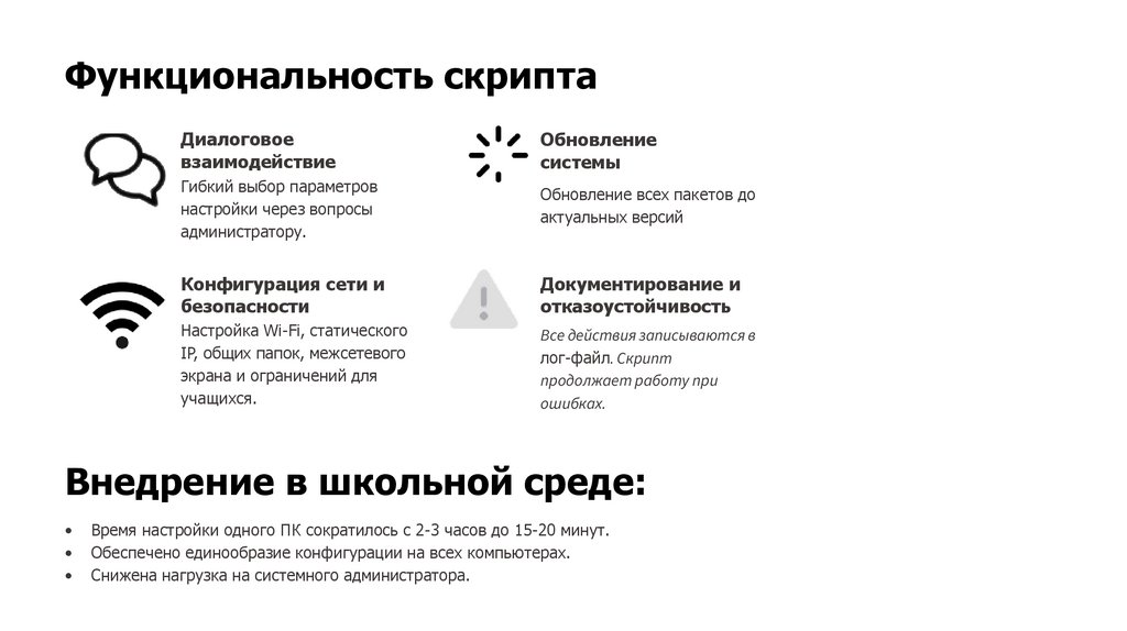 Время настройки одного ПК сократилось с 2-3 часов до 15-20 минут.