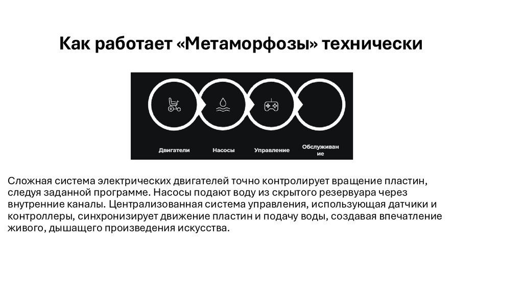 Как работает «Метаморфозы» техническиСложная система электрических двигателей точно контролирует вращение пластин,