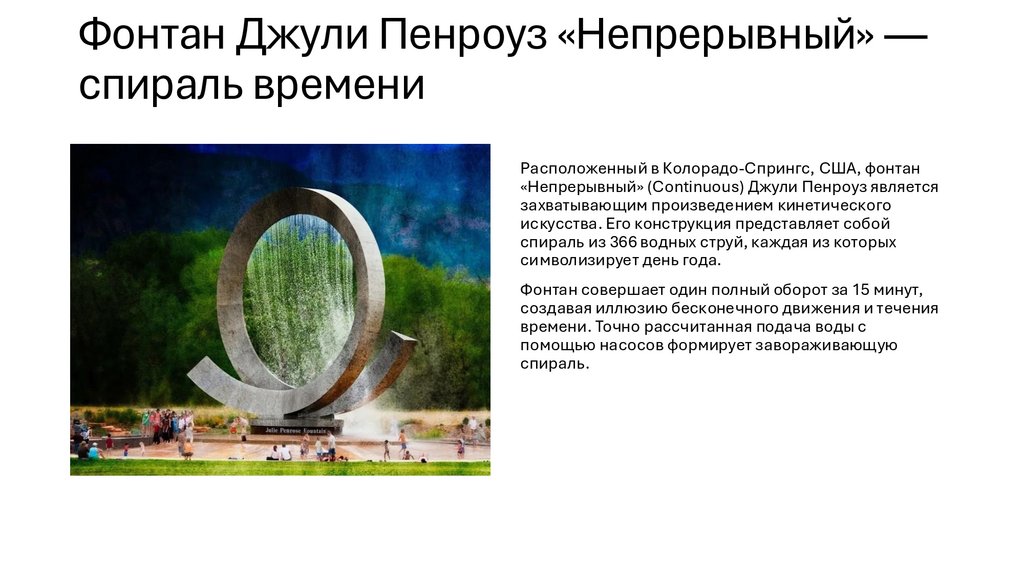 Фонтан Джули Пенроуз «Непрерывный» —спираль времени