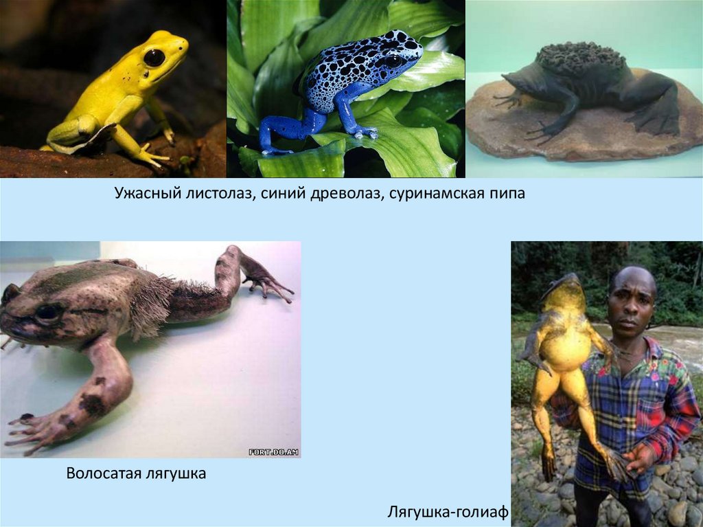 Ужасный листолаз, синий древолаз, суринамская пипаВолосатая лягушка