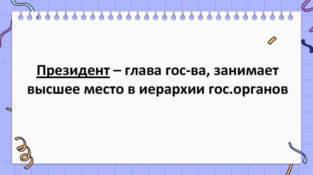 Президент – глава гос-ва, занимаетвысшее место в иерархии гос.органов