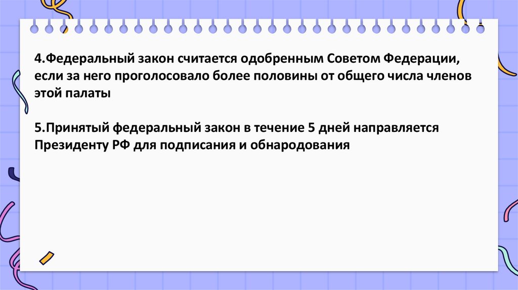 5.Принятый федеральный закон в течение 5 дней направляется