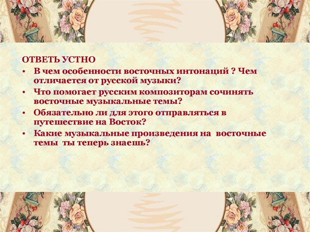 ОТВЕТЬ УСТНО• В чем особенности восточных интонаций ? Чем