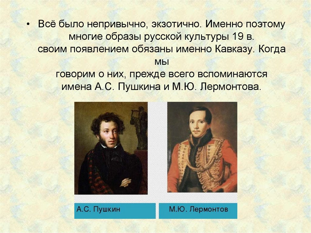 имена А.С. Пушкина и М.Ю. Лермонтова.