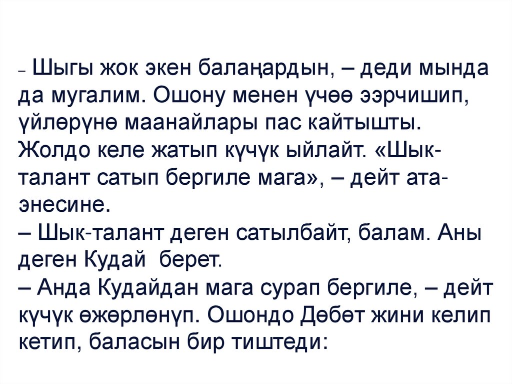 ‒ Шык-талант деген сатылбайт, балам. Аны