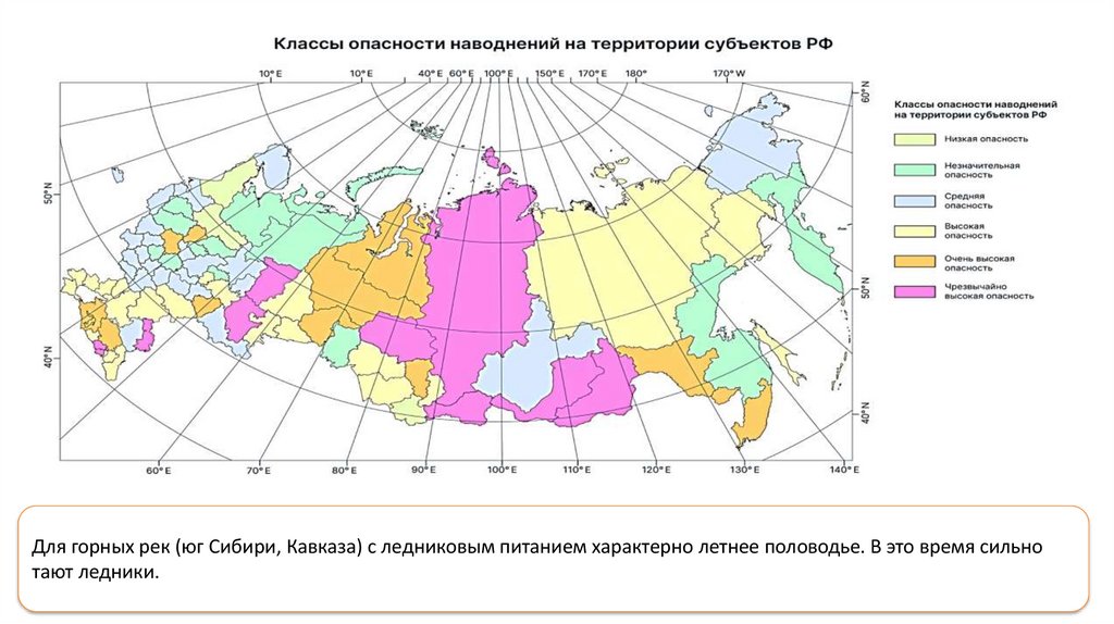 Для горных рек (юг Сибири, Кавказа) с ледниковым питанием характерно летнее половодье. В это время сильнотают ледники.
