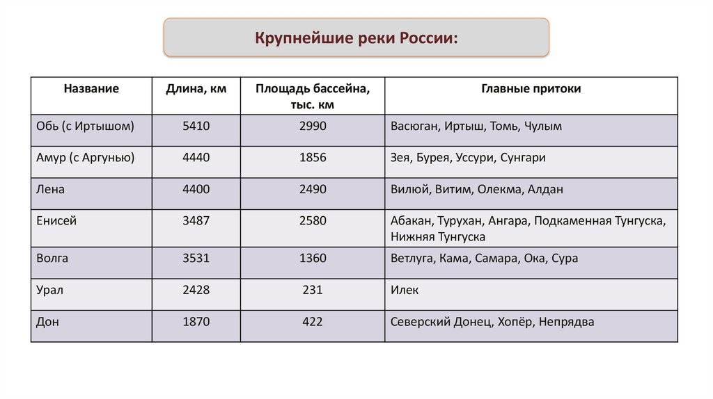 Крупнейшие реки России:Название