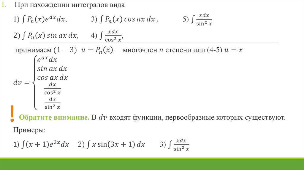 Таблица основных интегралов